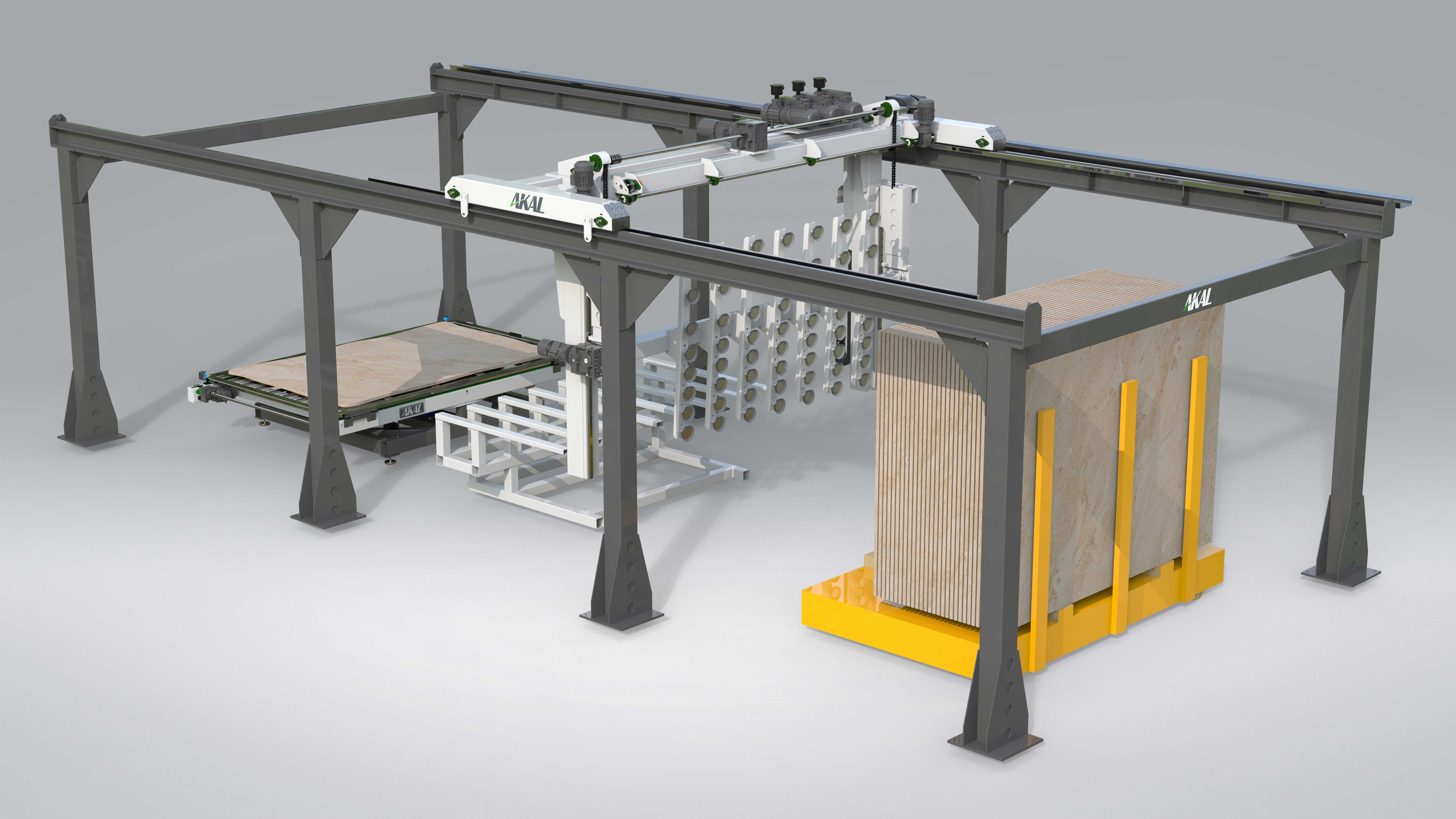 Os robôs SMART-3AX e 4AX são robôs de carga e descarga projetados para manusear placas de mármore, granito ou pedra natural.