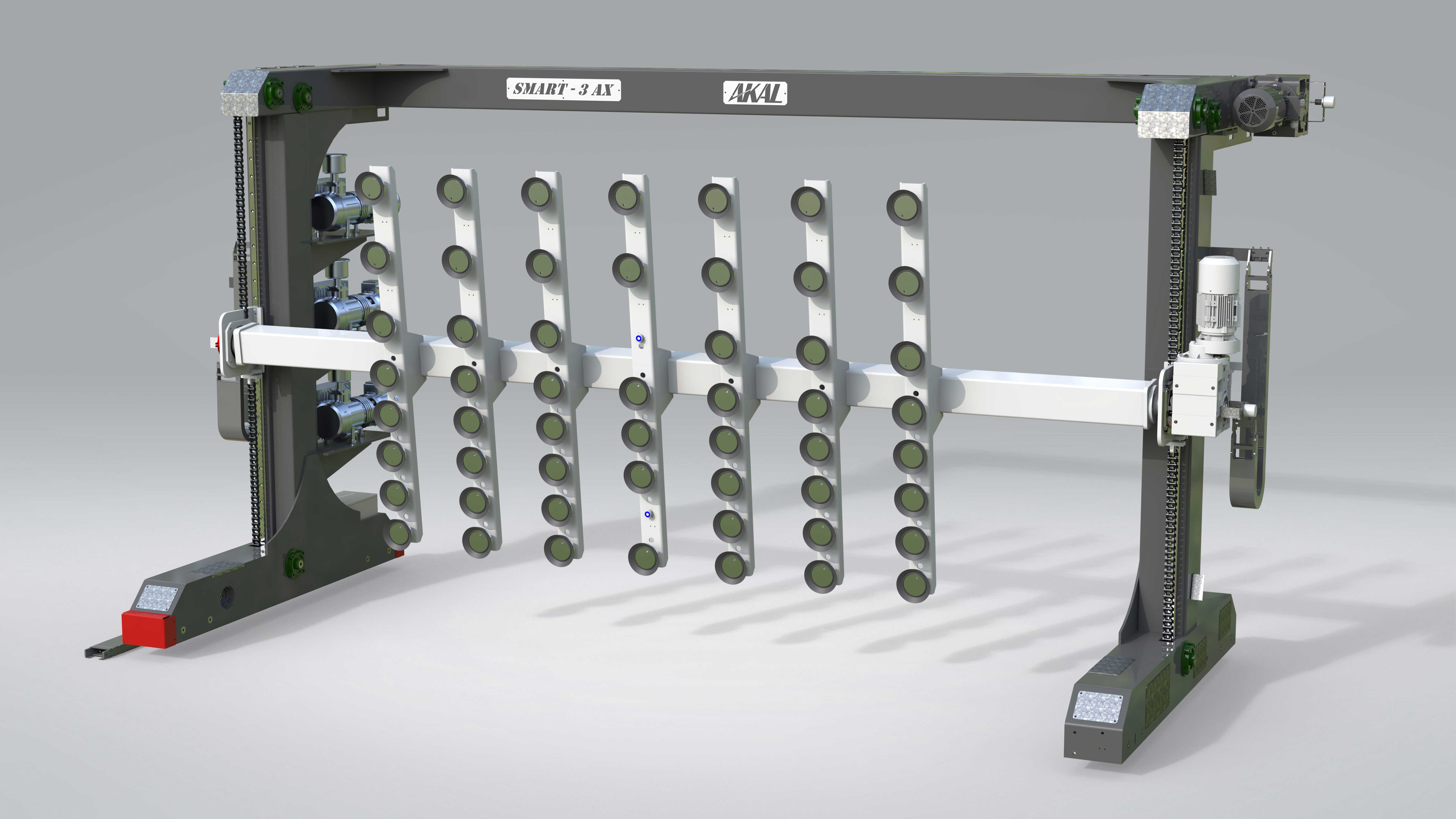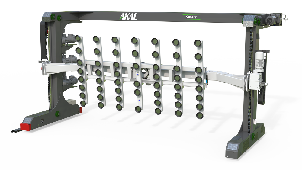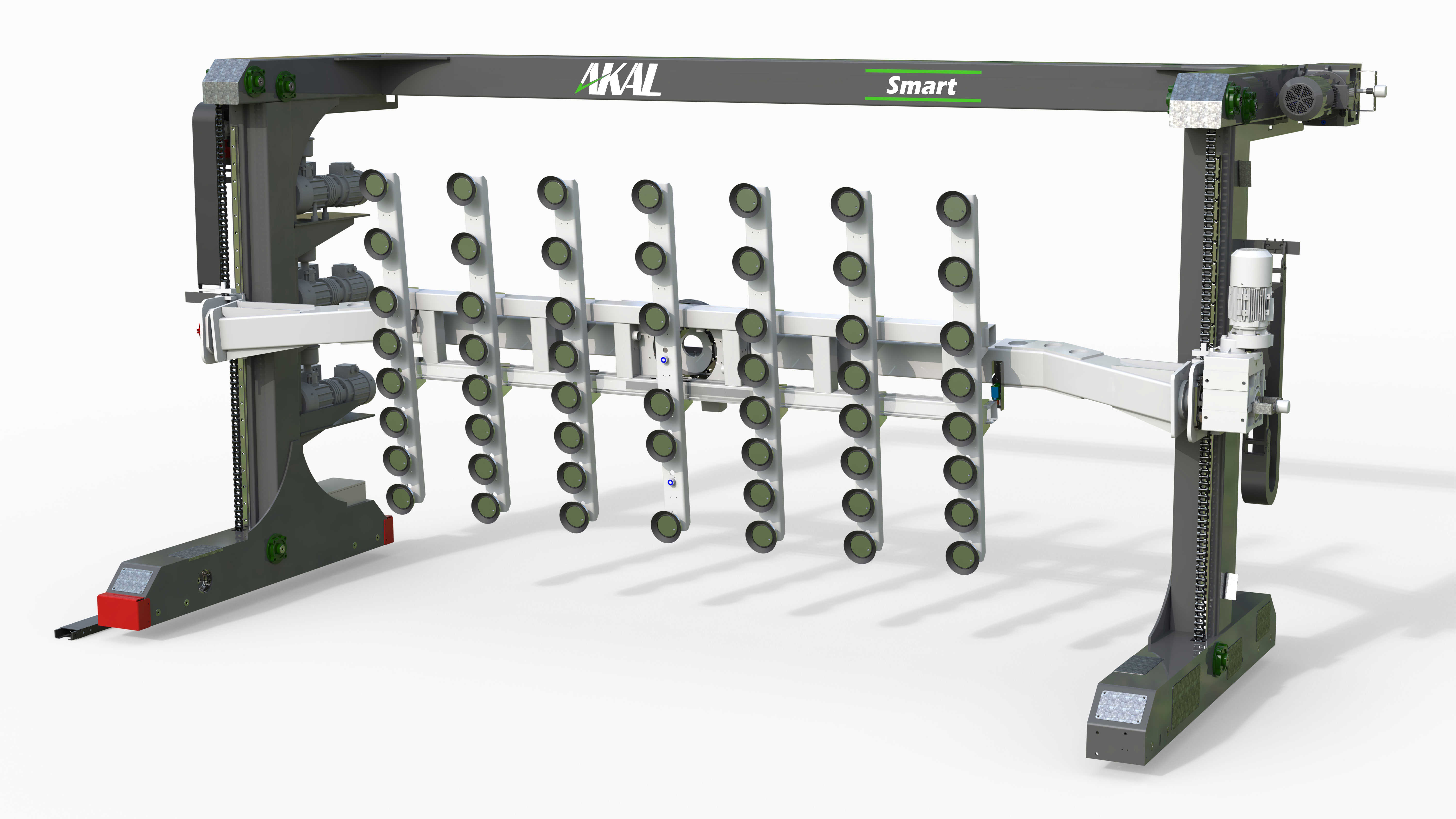 - Os robôs SMART podem ser fornecidos com um sistema pneumático de fixação. Esse sistema funciona em conjunto com ventosas a vácuo para garantir o manuseio seguro de placas de travertino e materiais delicados.