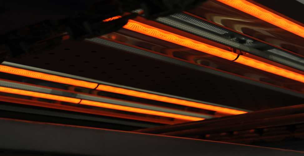 Ampul tipi lambalarla donatılmış kızılötesi (IR) fırınlar.